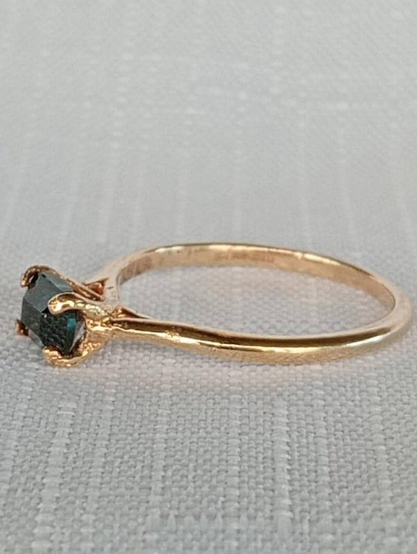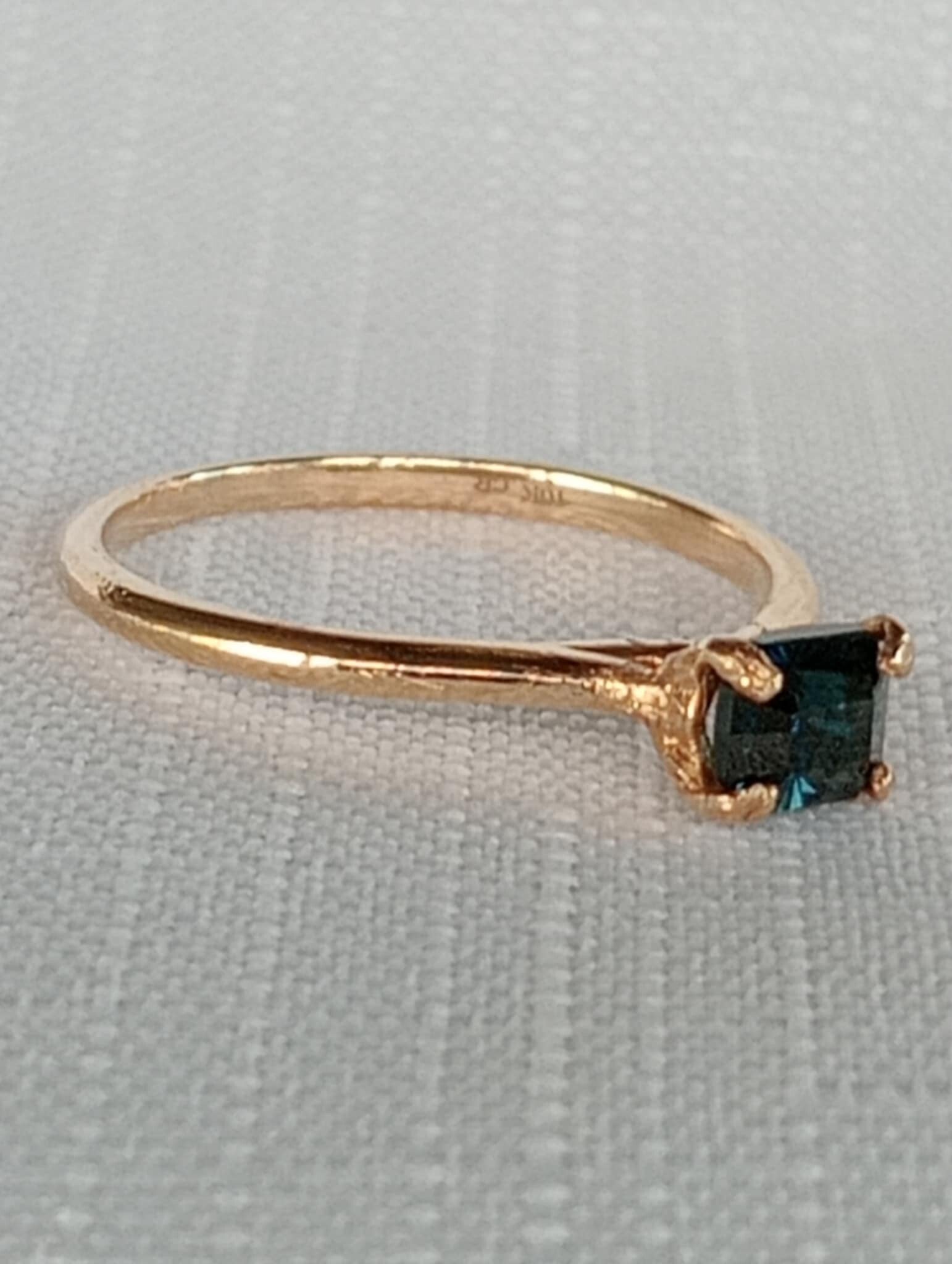 This beautiful blue 1ct emerald cut sapphire has been set in a four claw 9ct gold ring size N1/2.
