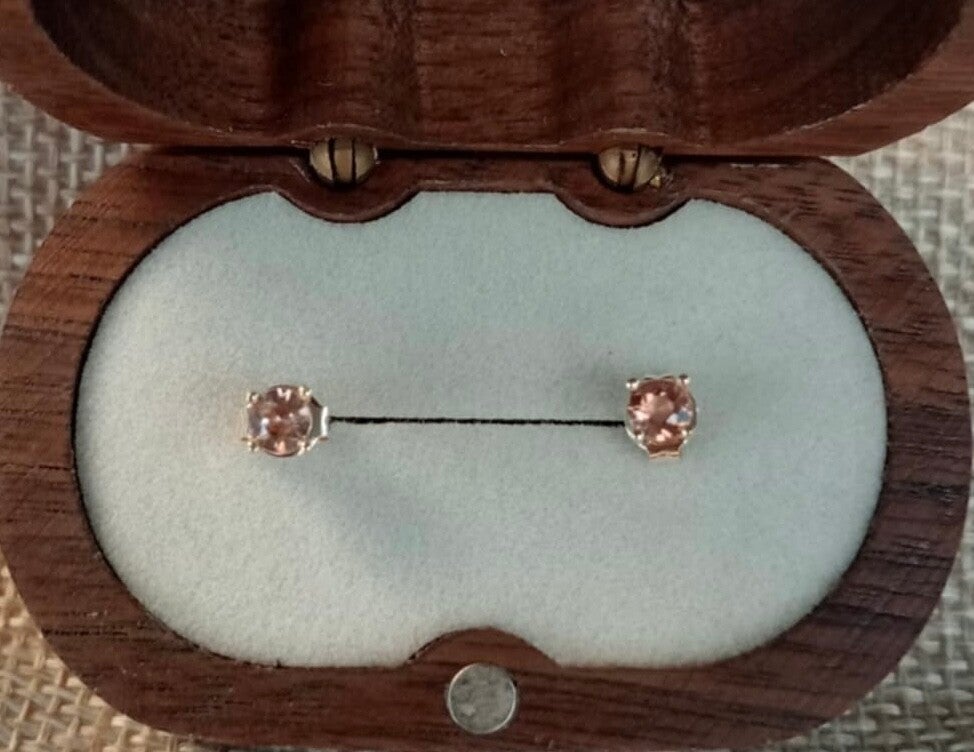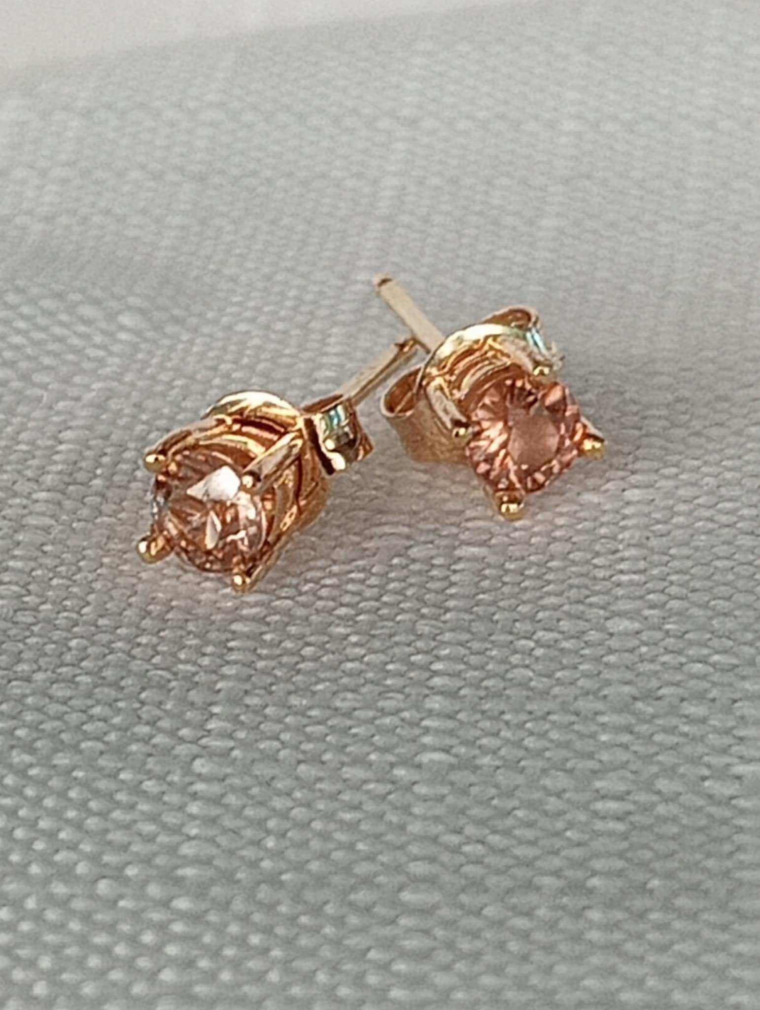 Pink Zircon 0.45ct pair set in 9ct Gold Studs.