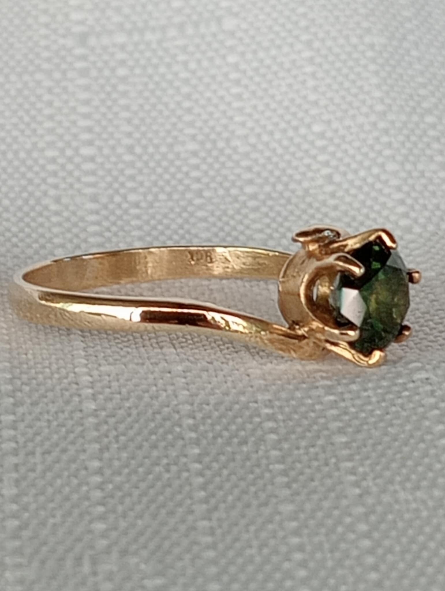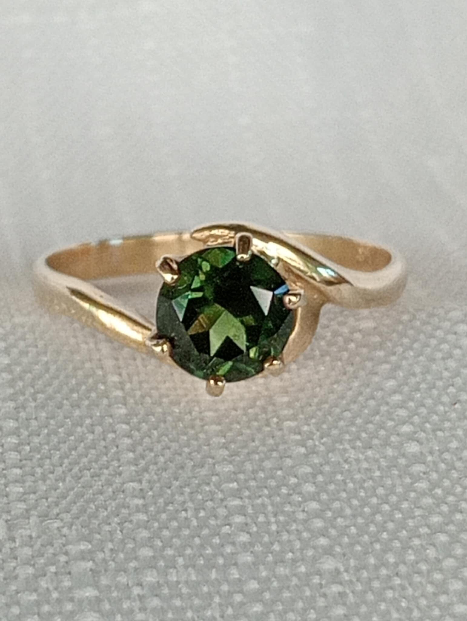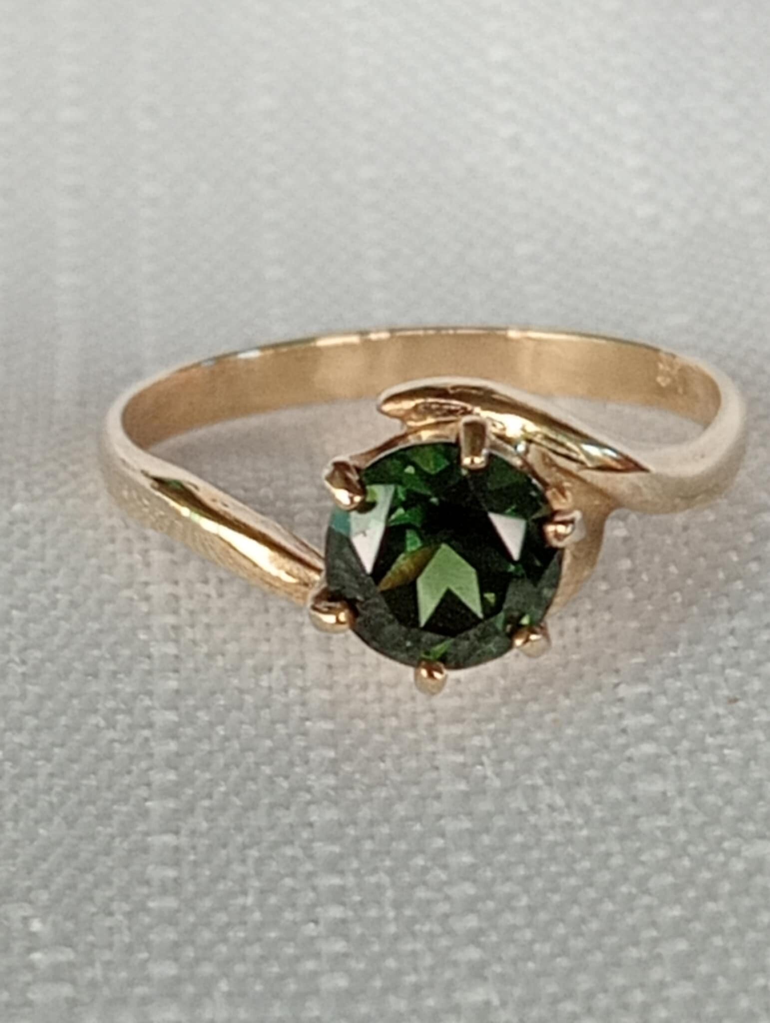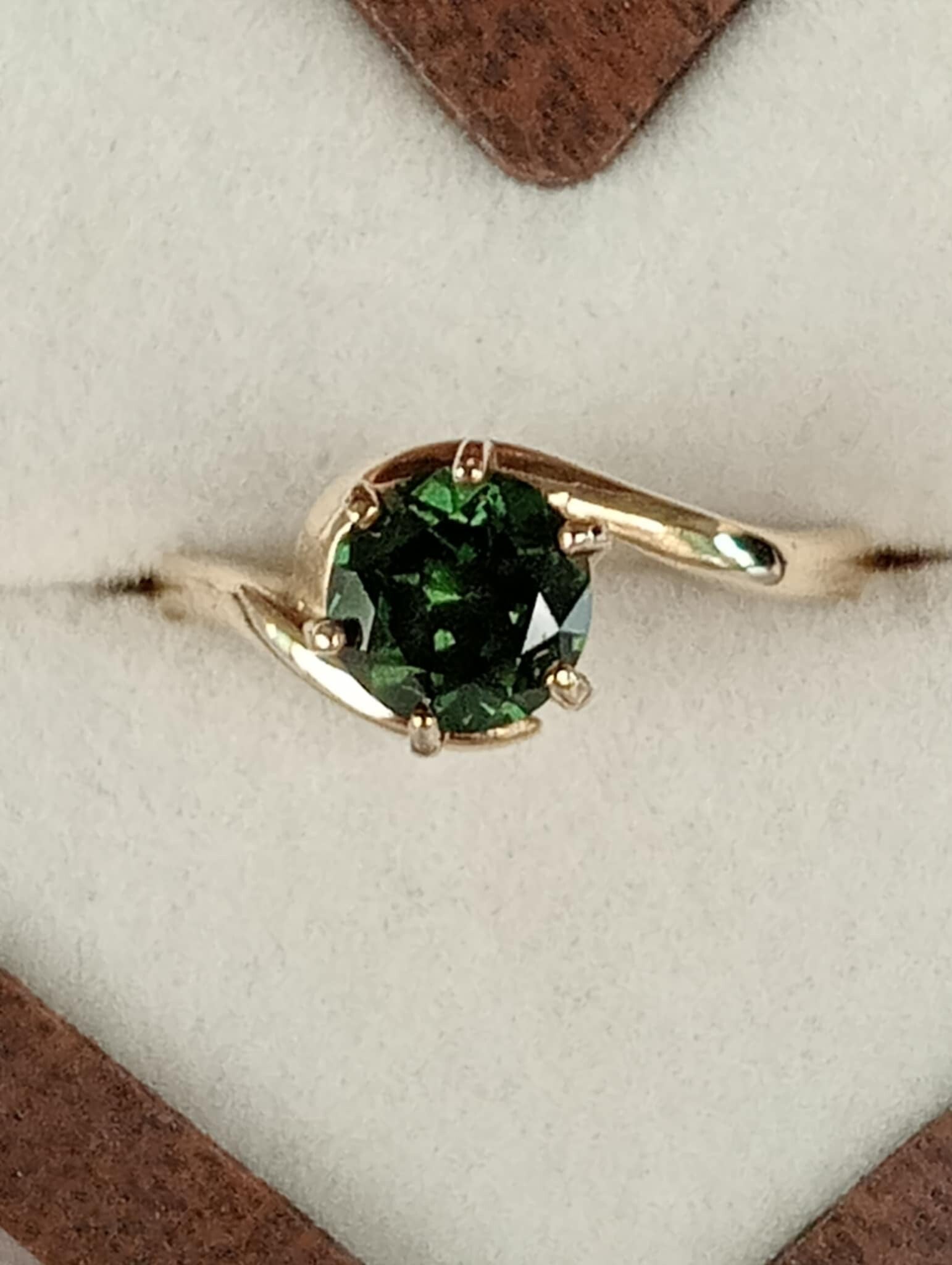 This lovely 1.15ct brilliant cut CQ green sapphire has been set in this amazing 9ct gold design.