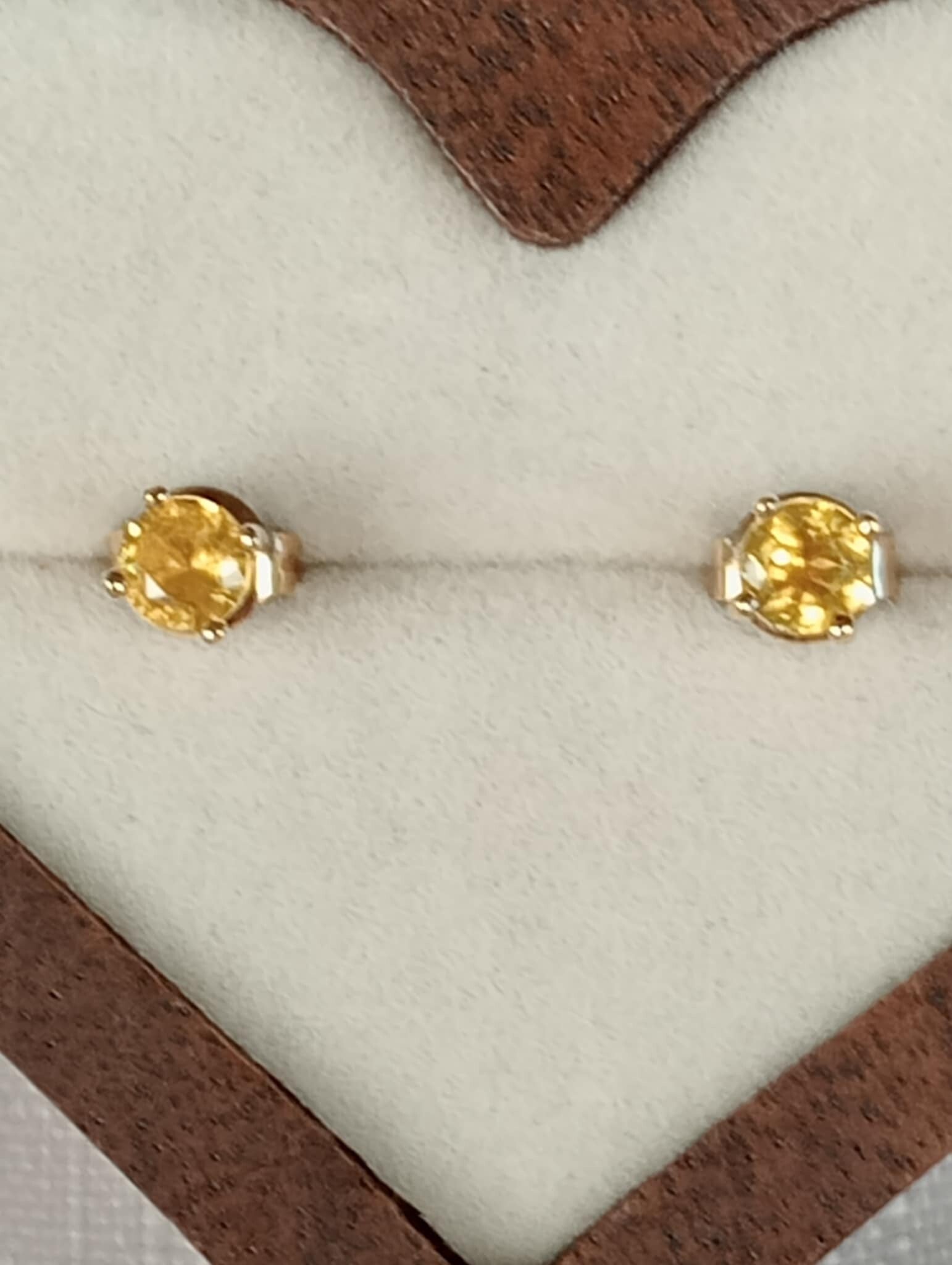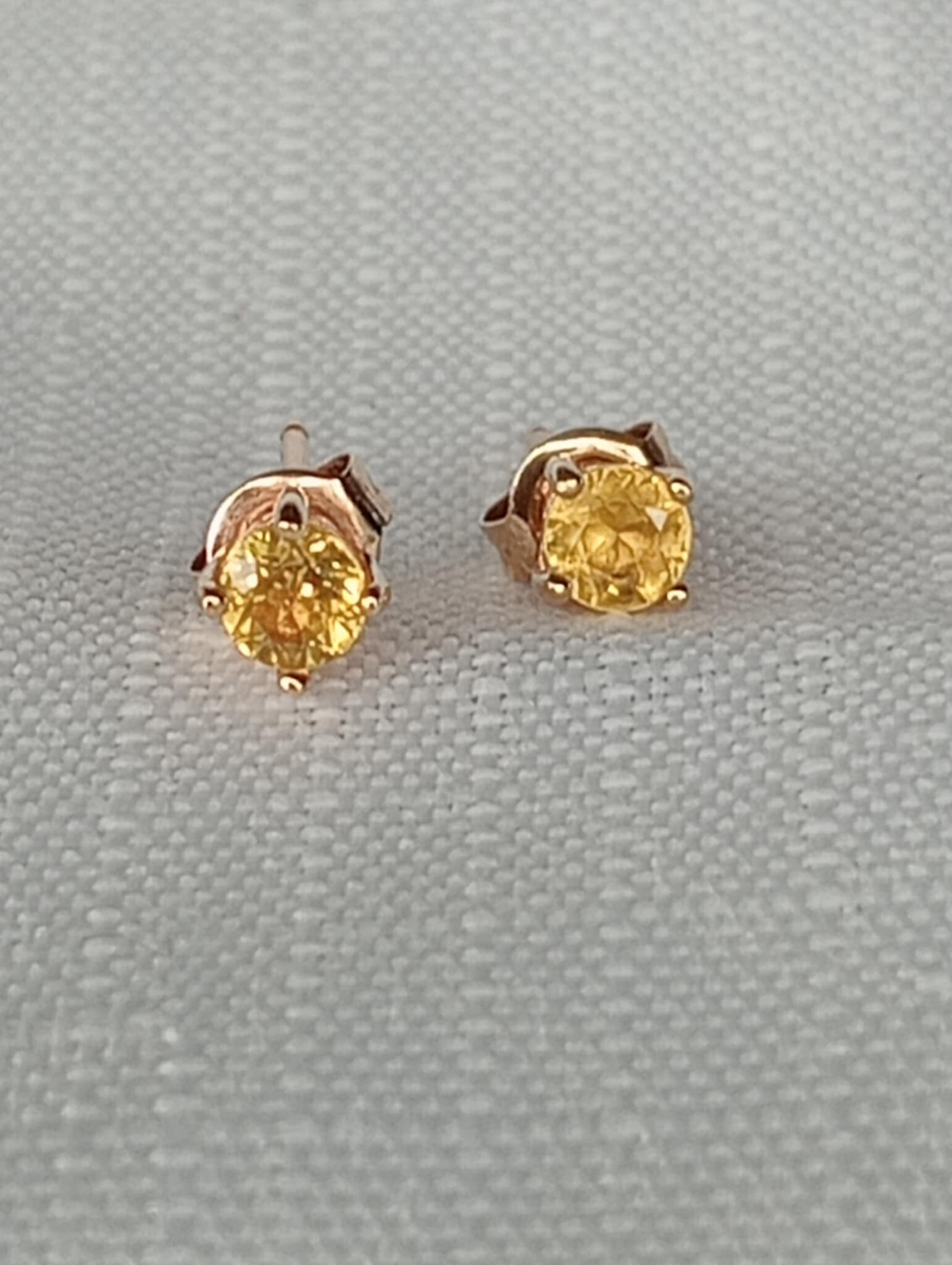 This Beautiful .56ct pair of brilliant cut CQ Yellow Sapphires set in 9ct Gold studs.