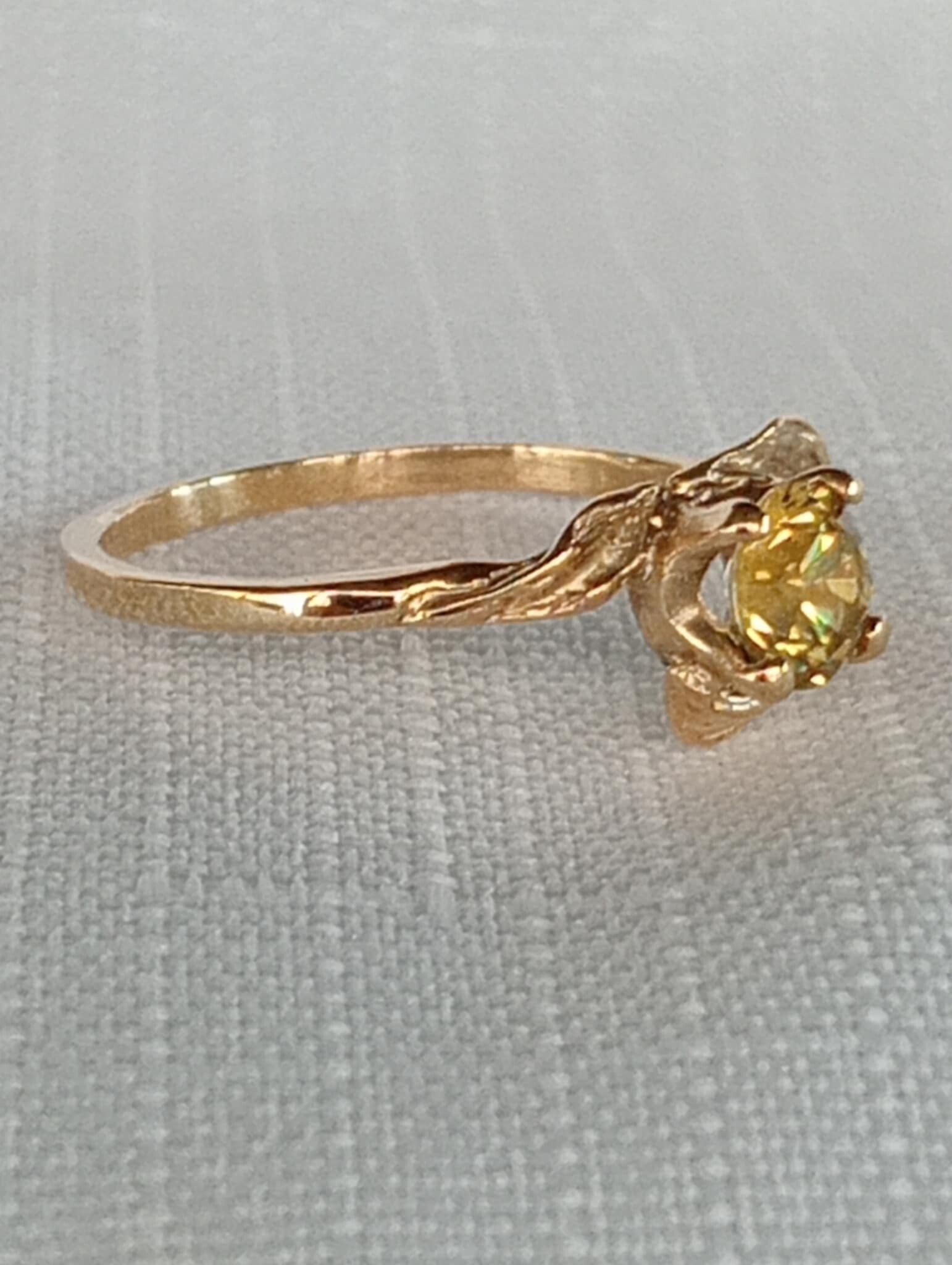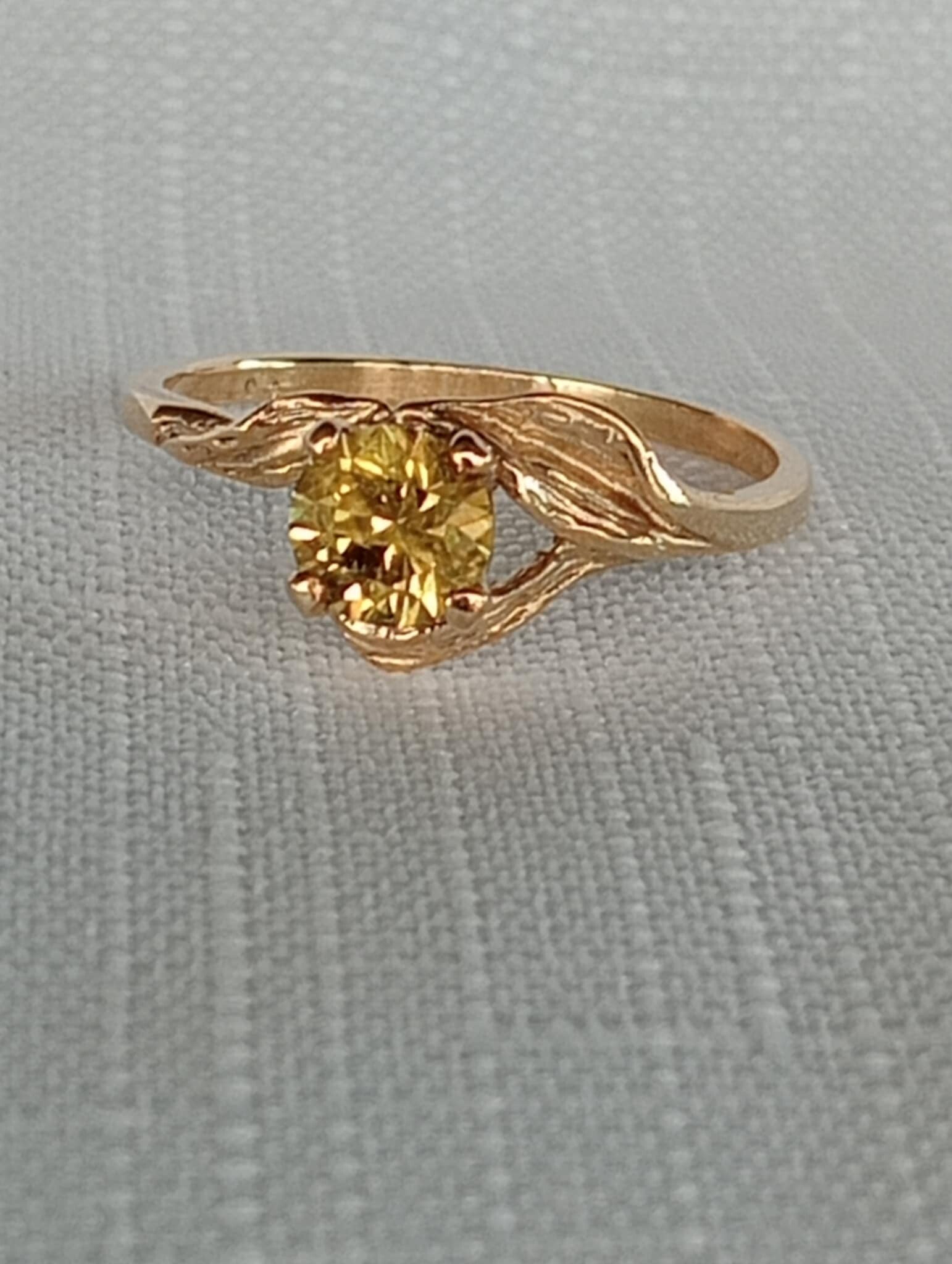Stunning .75ct CQ Brilliant cut, untreated, Golden Yellow Sapphire set in this Stunning 9ct Gold Design.