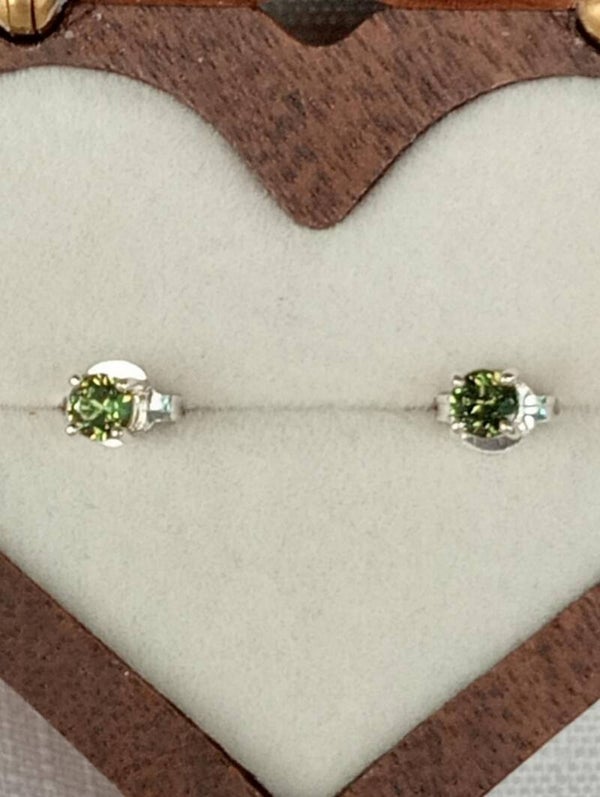 Pretty Green .55ct 3.5mm Sapphires set in Sterling Silver studs