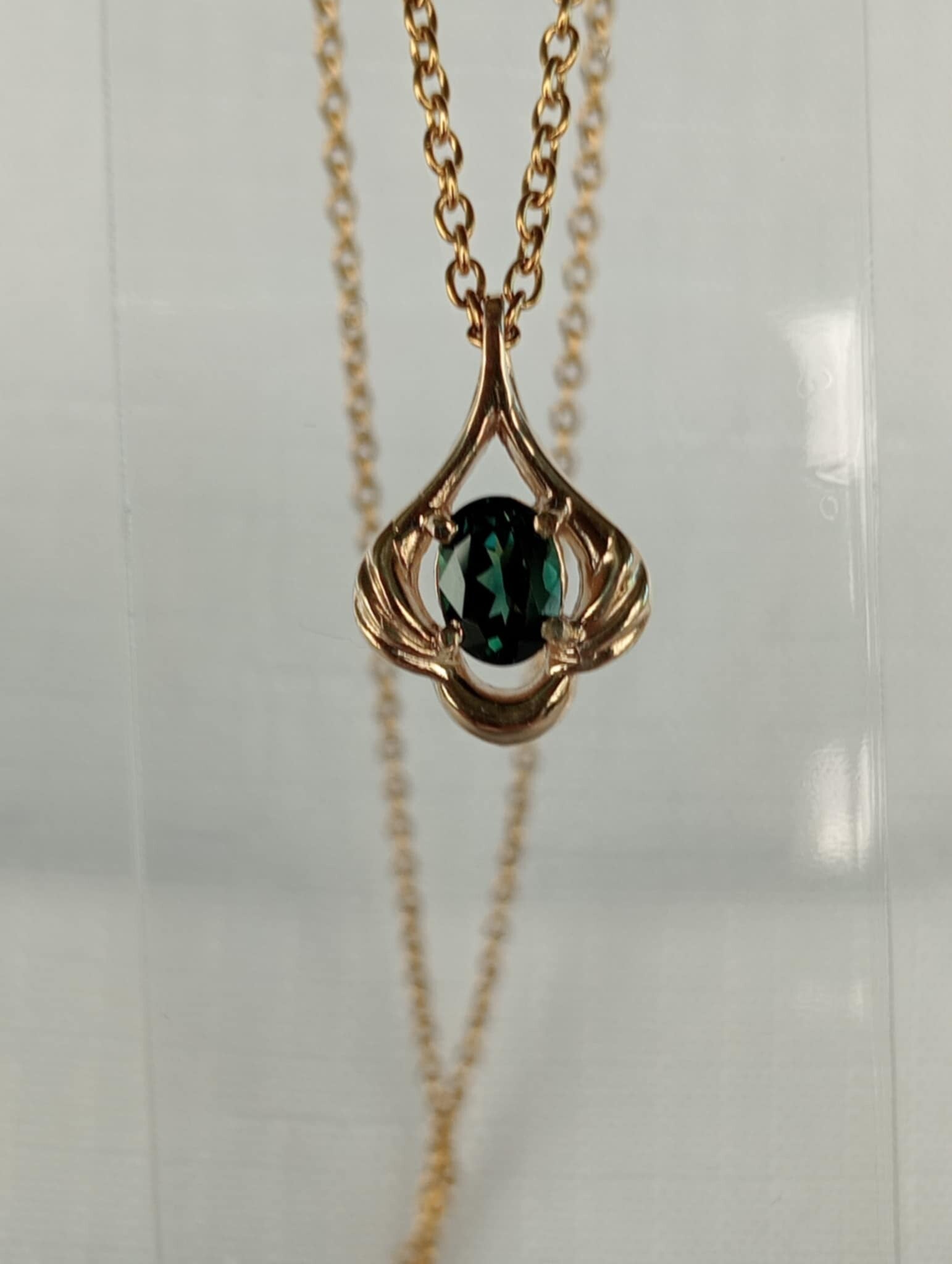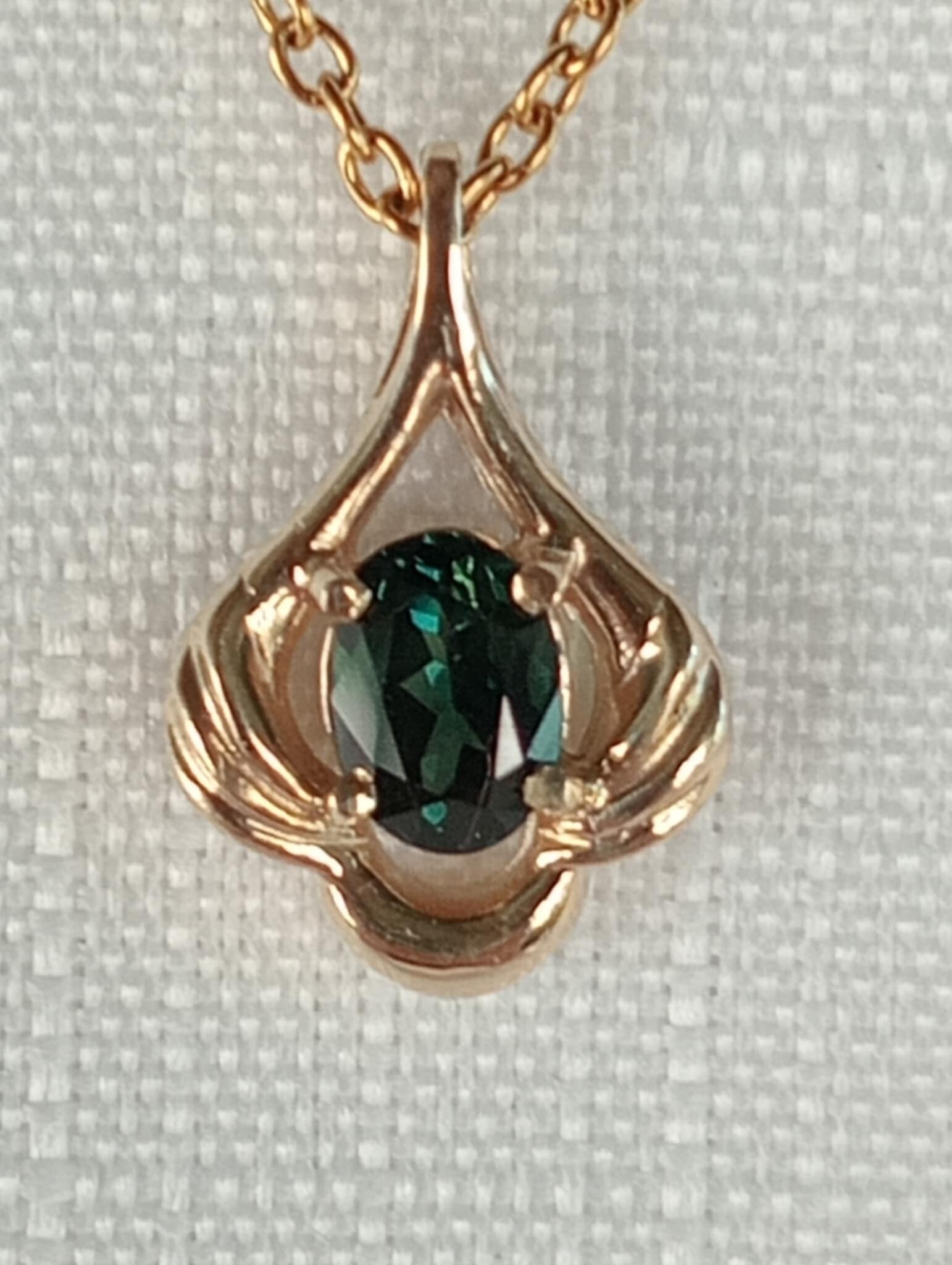 Absolutely Beautiful Teal/Party CQ Sapphire .90ct 6.5x4.6mm set in this Lovely 9ct Gold Pendant 17.7x11.6mm setting.