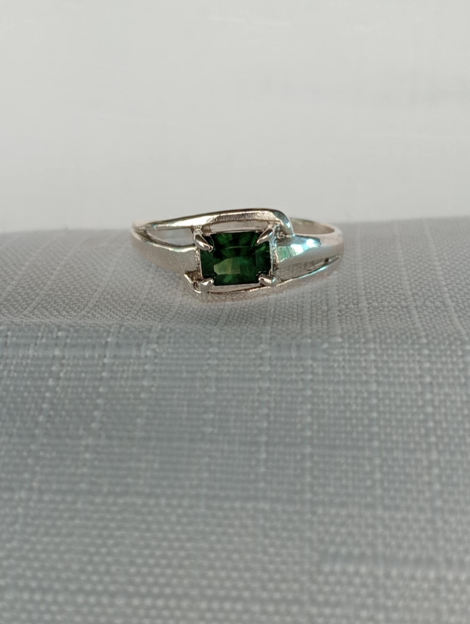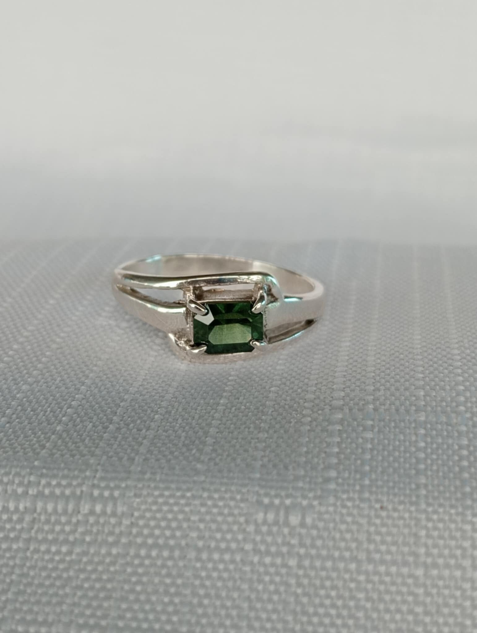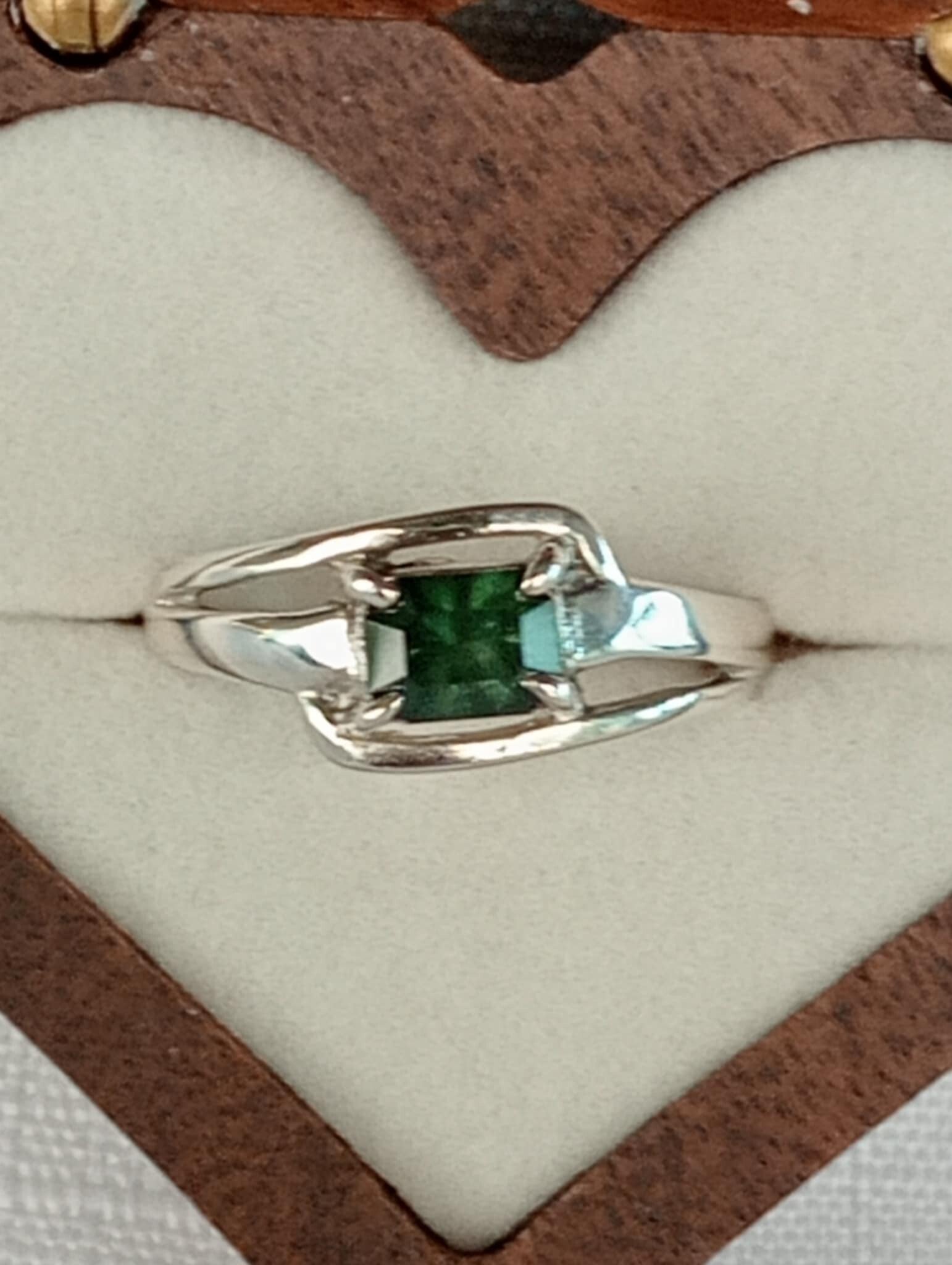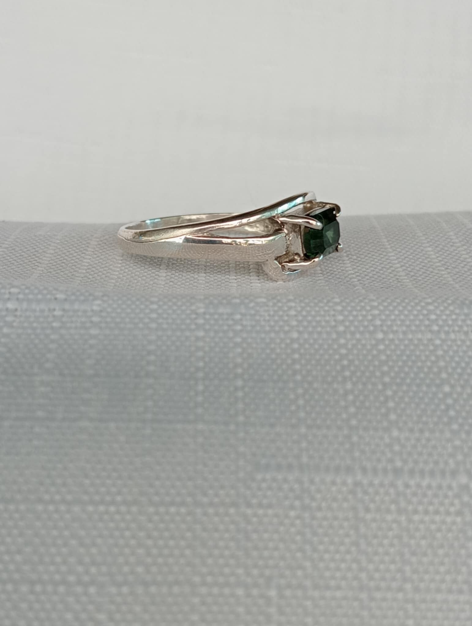 Sapphire CQ Green 1.05ct 6.3x4.7mm set in this Lovely Sterling Silver design Ring.