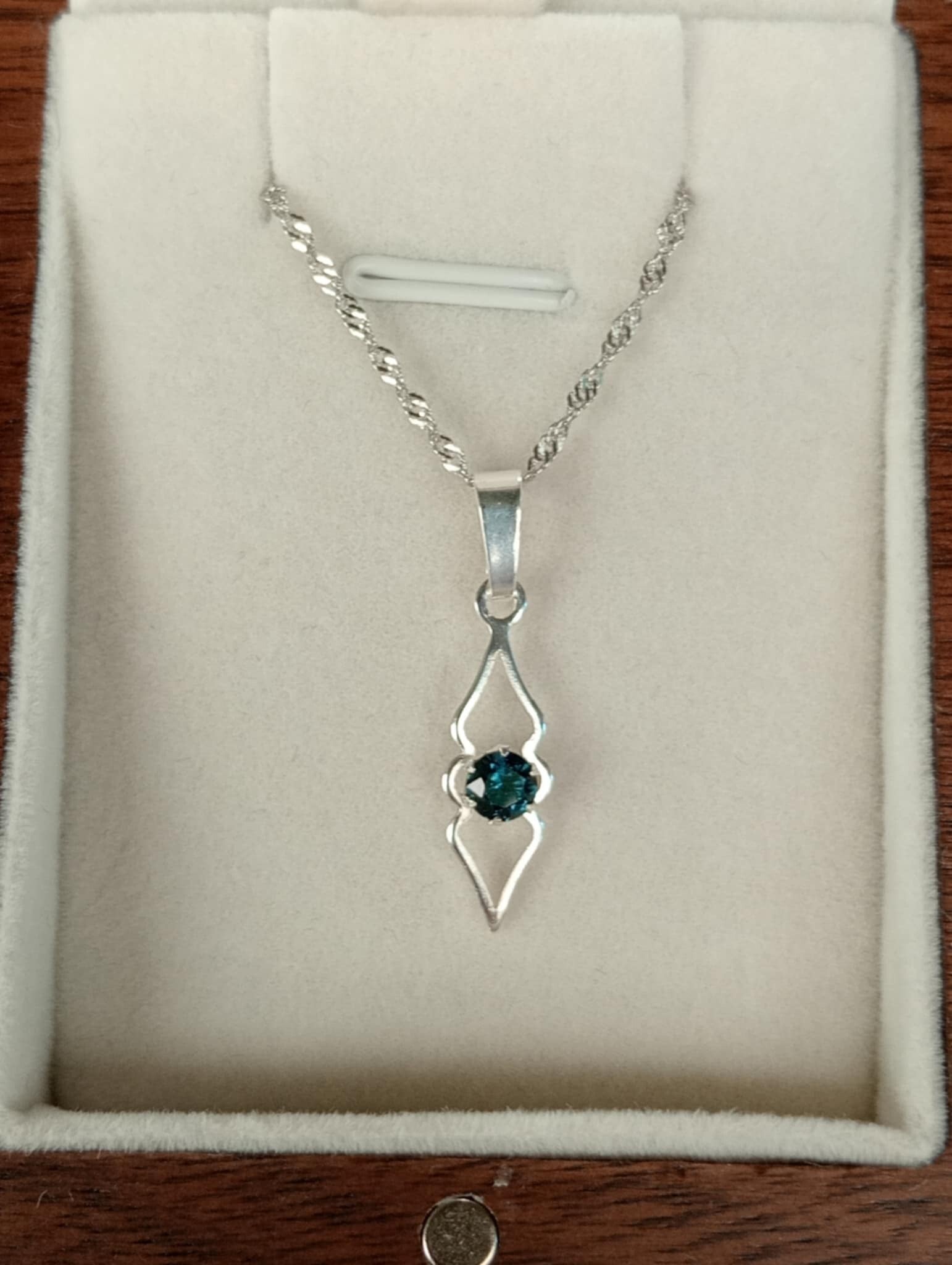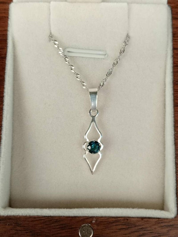 Lovely 4mm CQ Blue Sapphire set in this Sterling Silver Pendant 26.1x6.3mm.