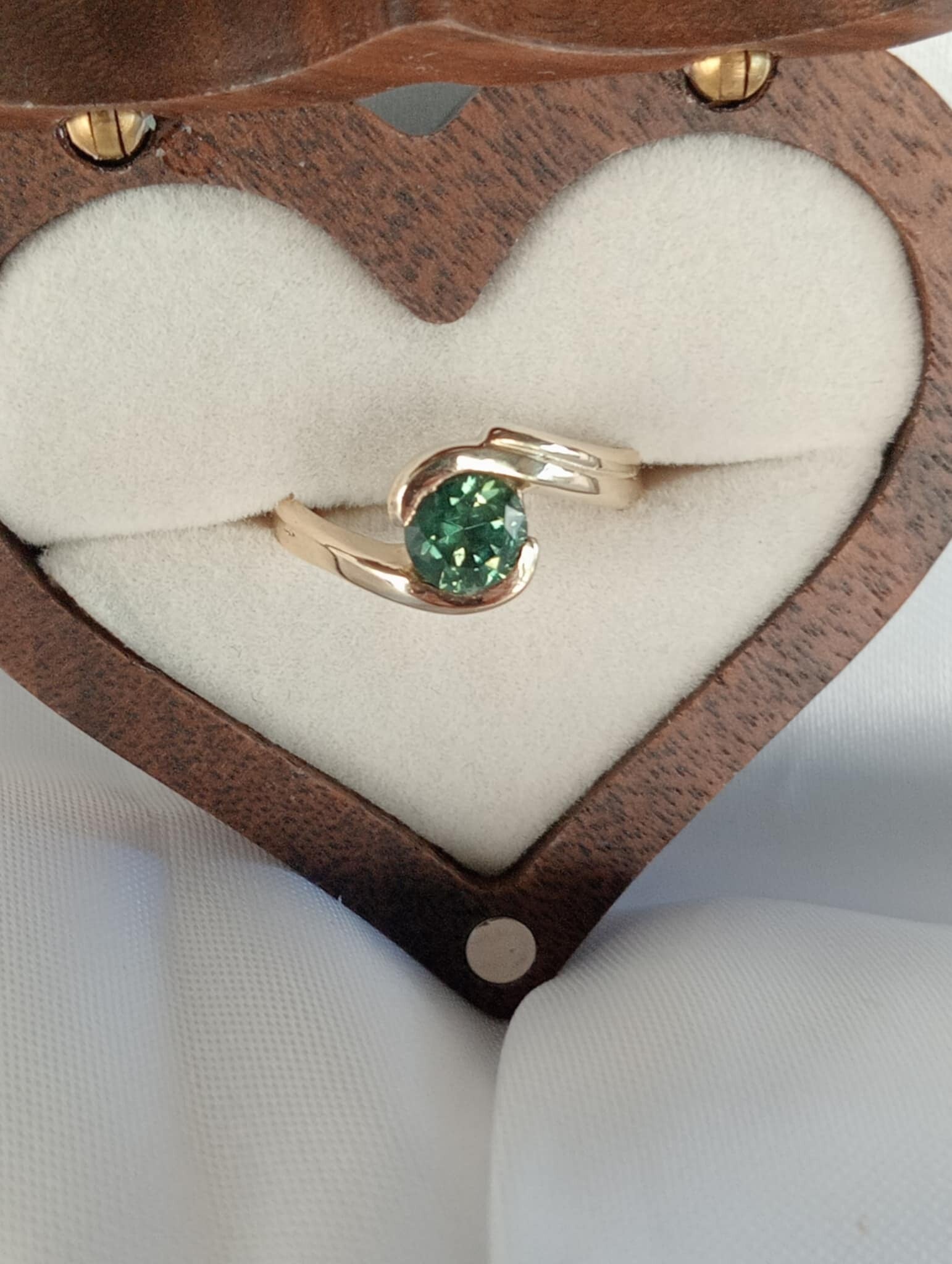 Stunning Sapphire mint/ice Green 1.2ct 6mm set in this Amazing 9ct Gold Bezel setting.