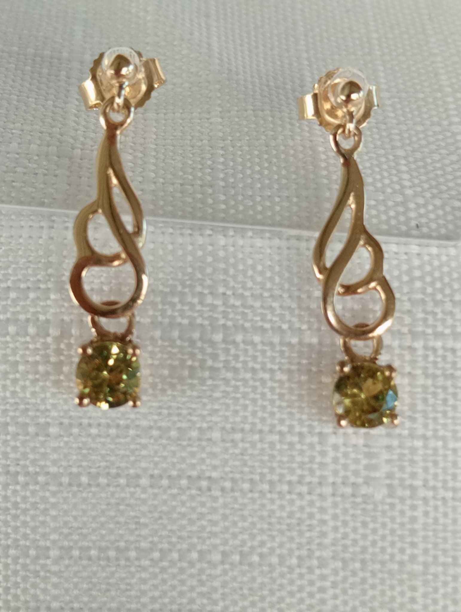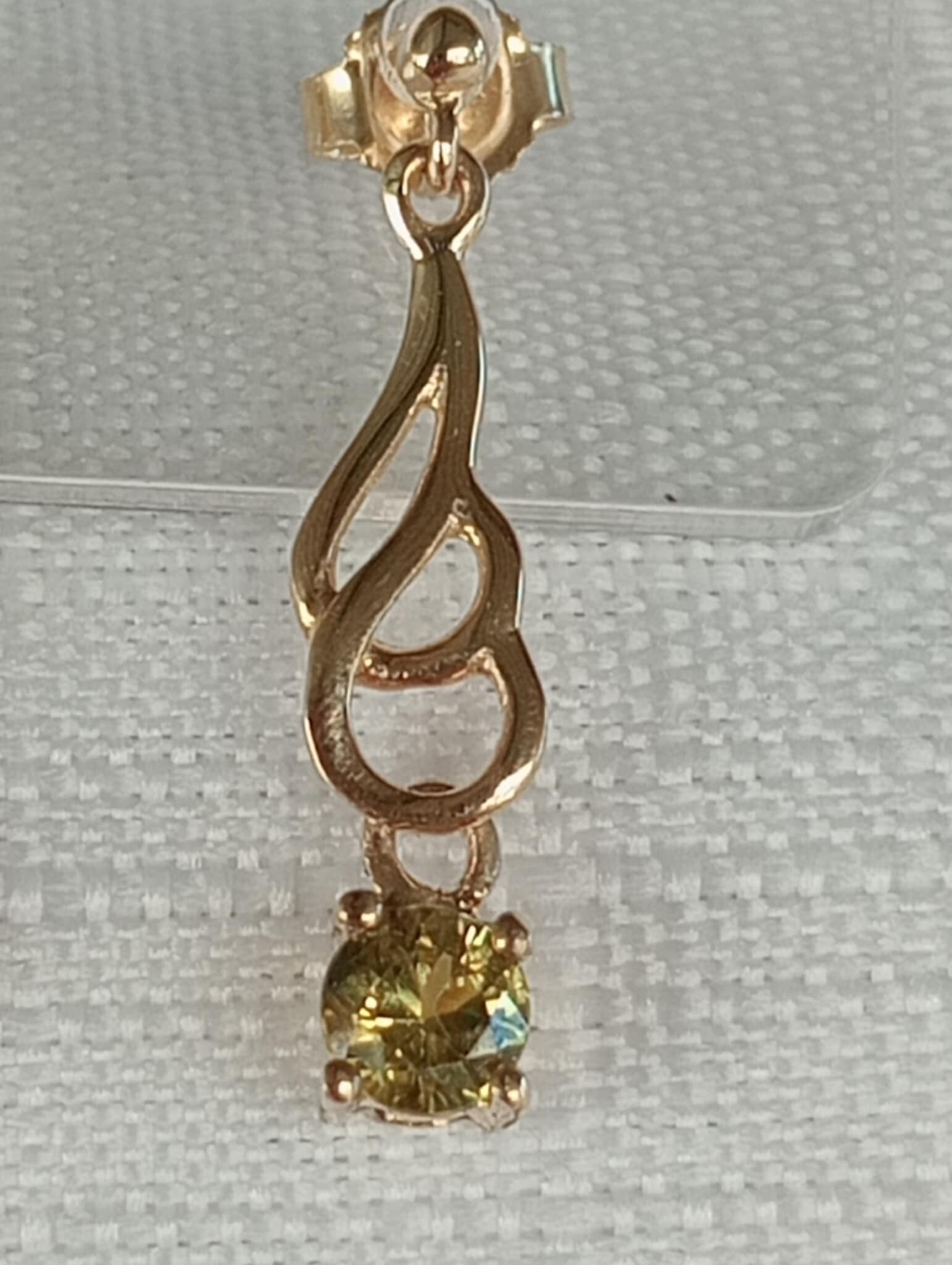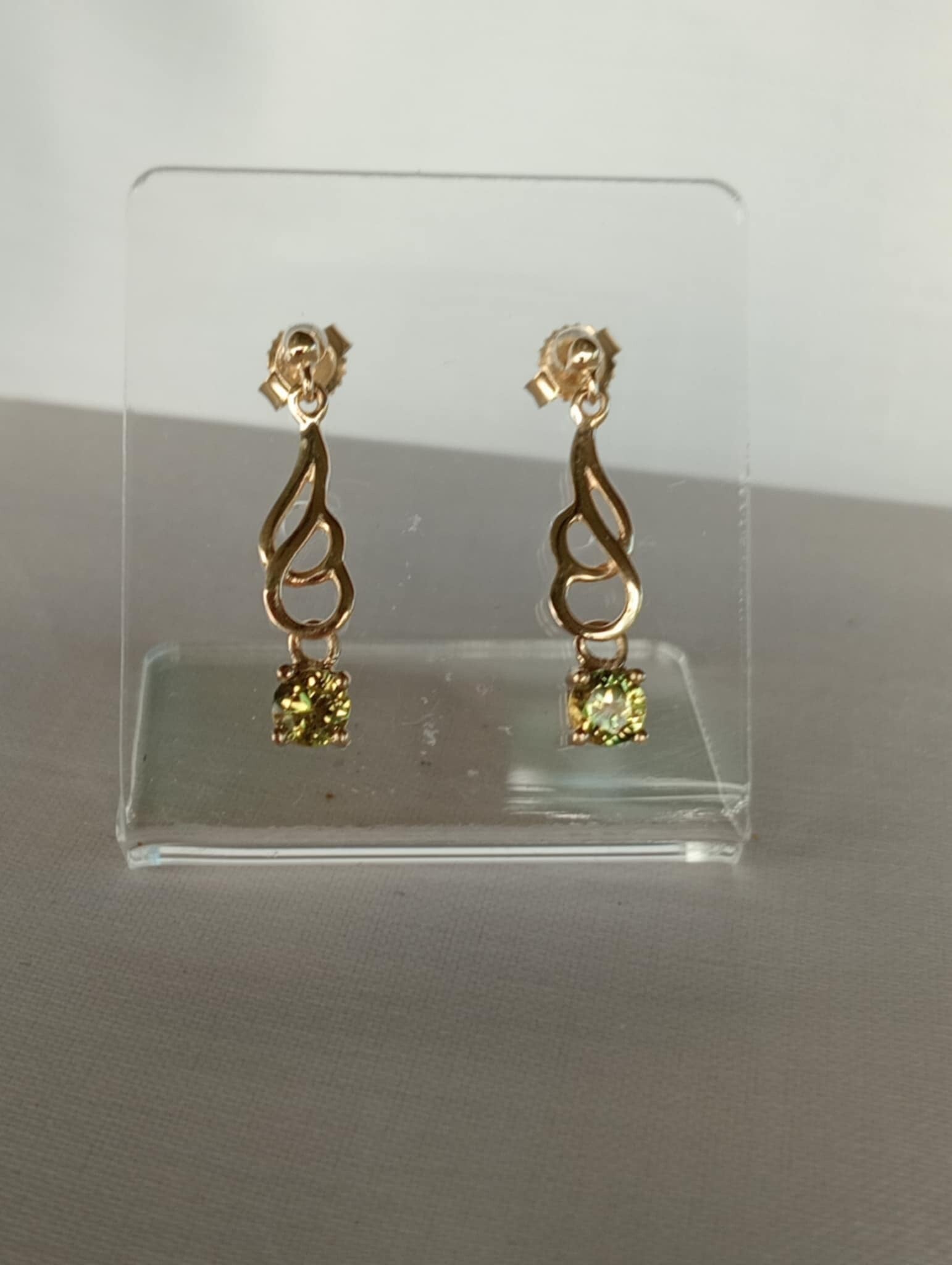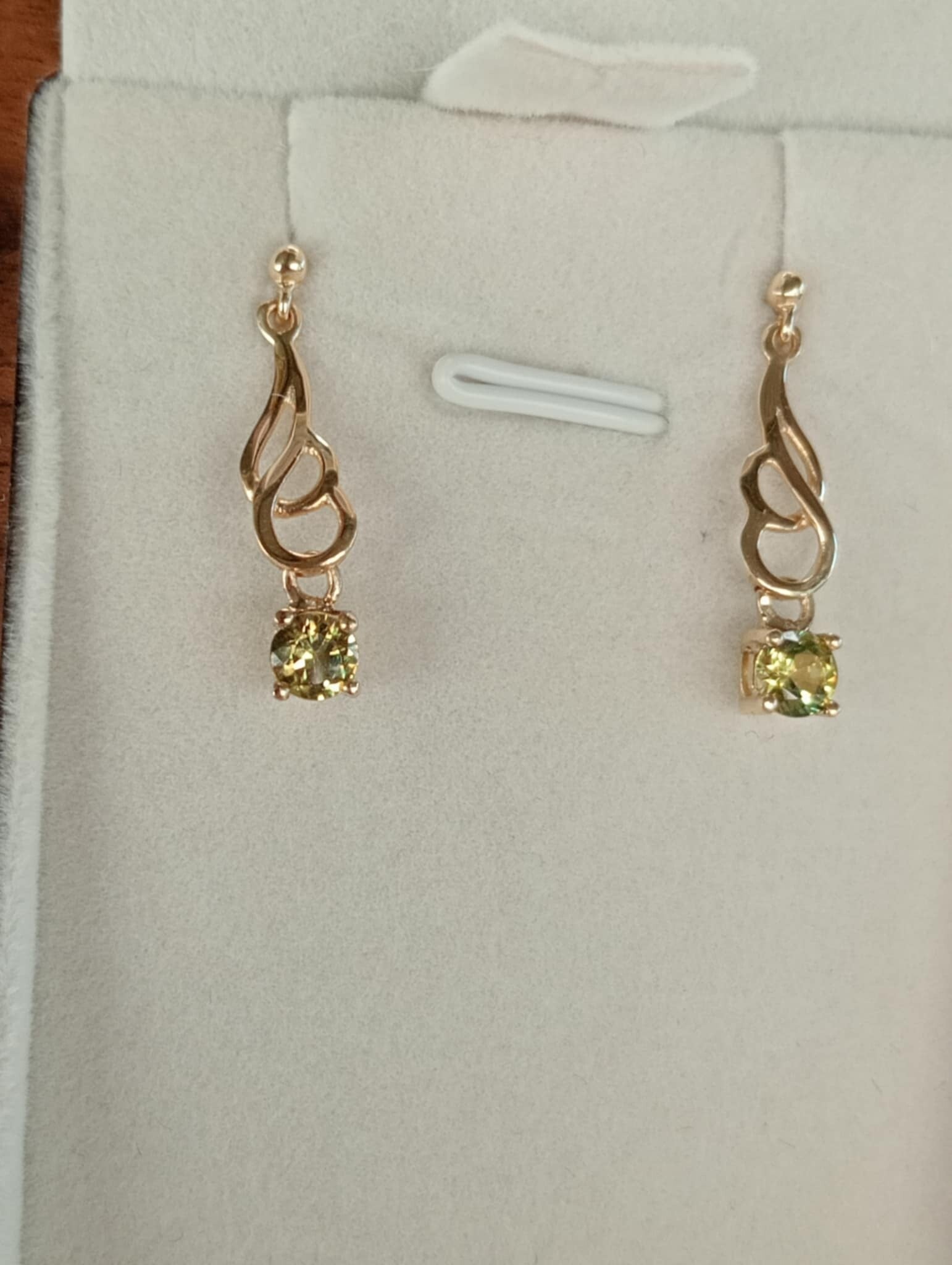 Beautiful design 9ct Gold Drop Earrings hold .65ct 4.1mm Yellow Party Colour Sapphires.