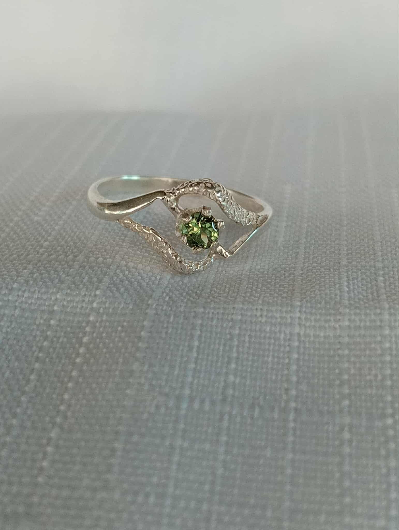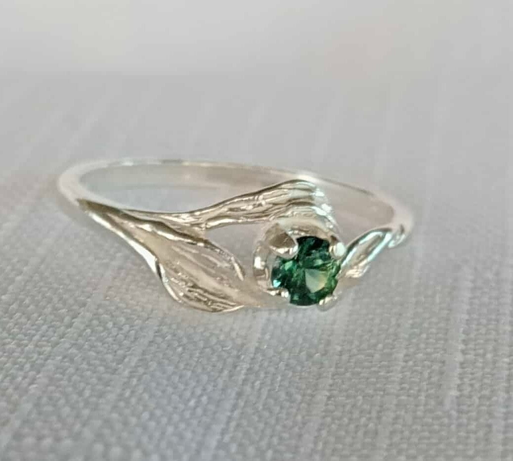 Beautiful Sterling Silver design set with Lovely Green CQ 3.6mm Sapphire.