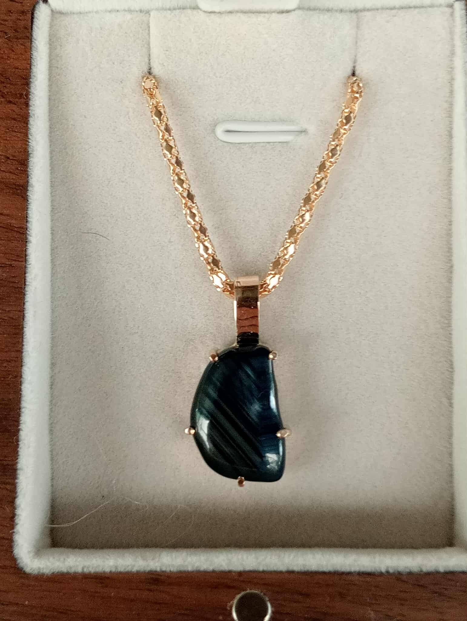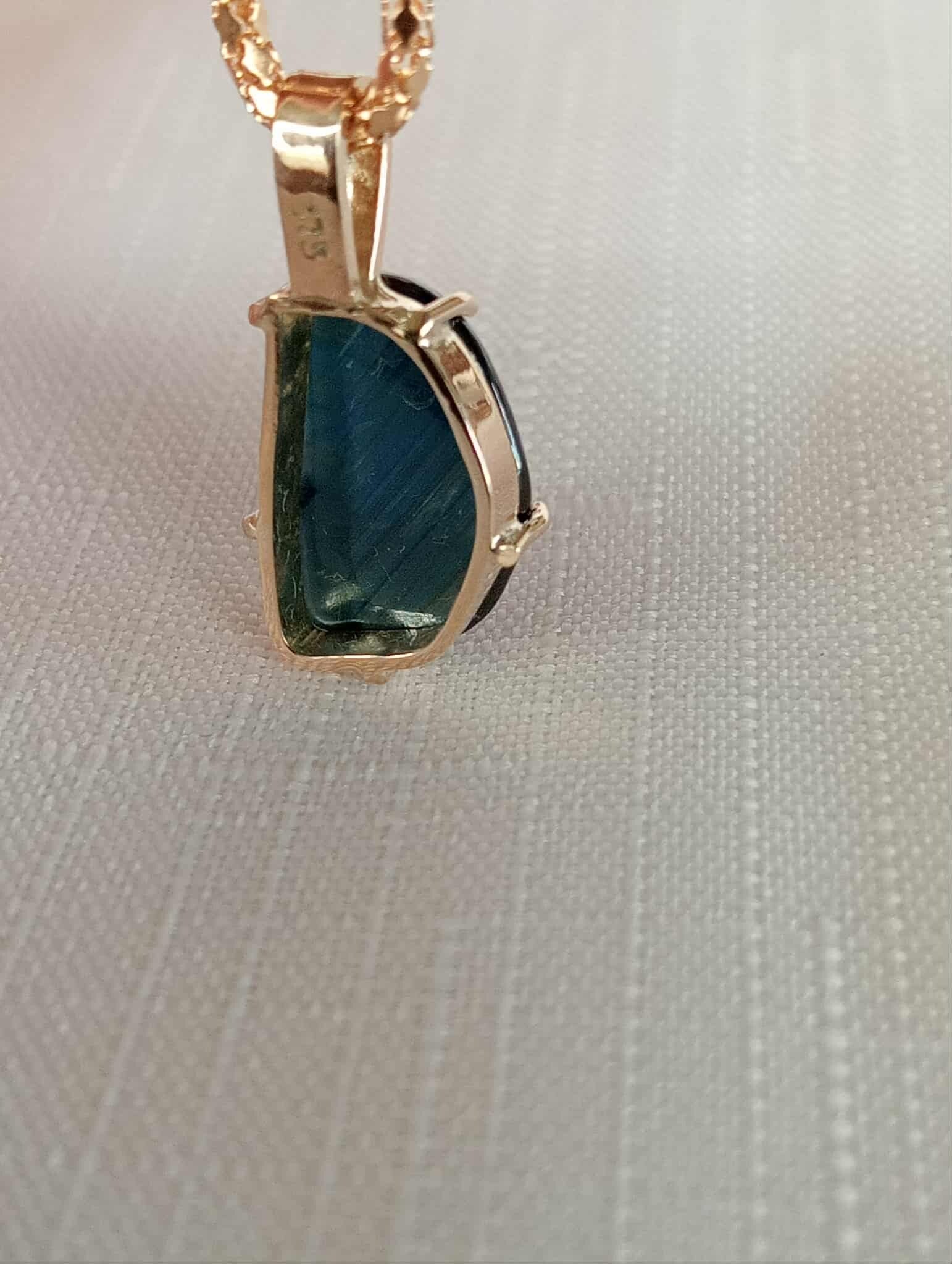 This Absolutely Stunning 6.45ct 15.8x10.4mm polished Blue Sargent stripe CQ Sapphire has been set in this beautiful heavy 9ct Gold setting.