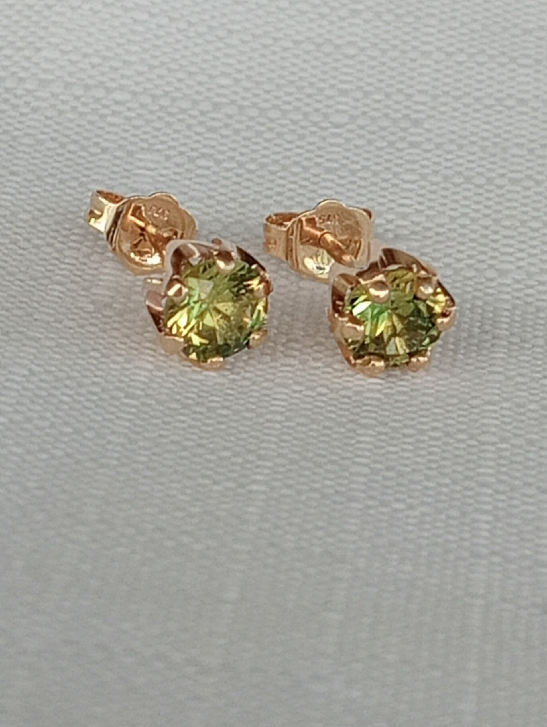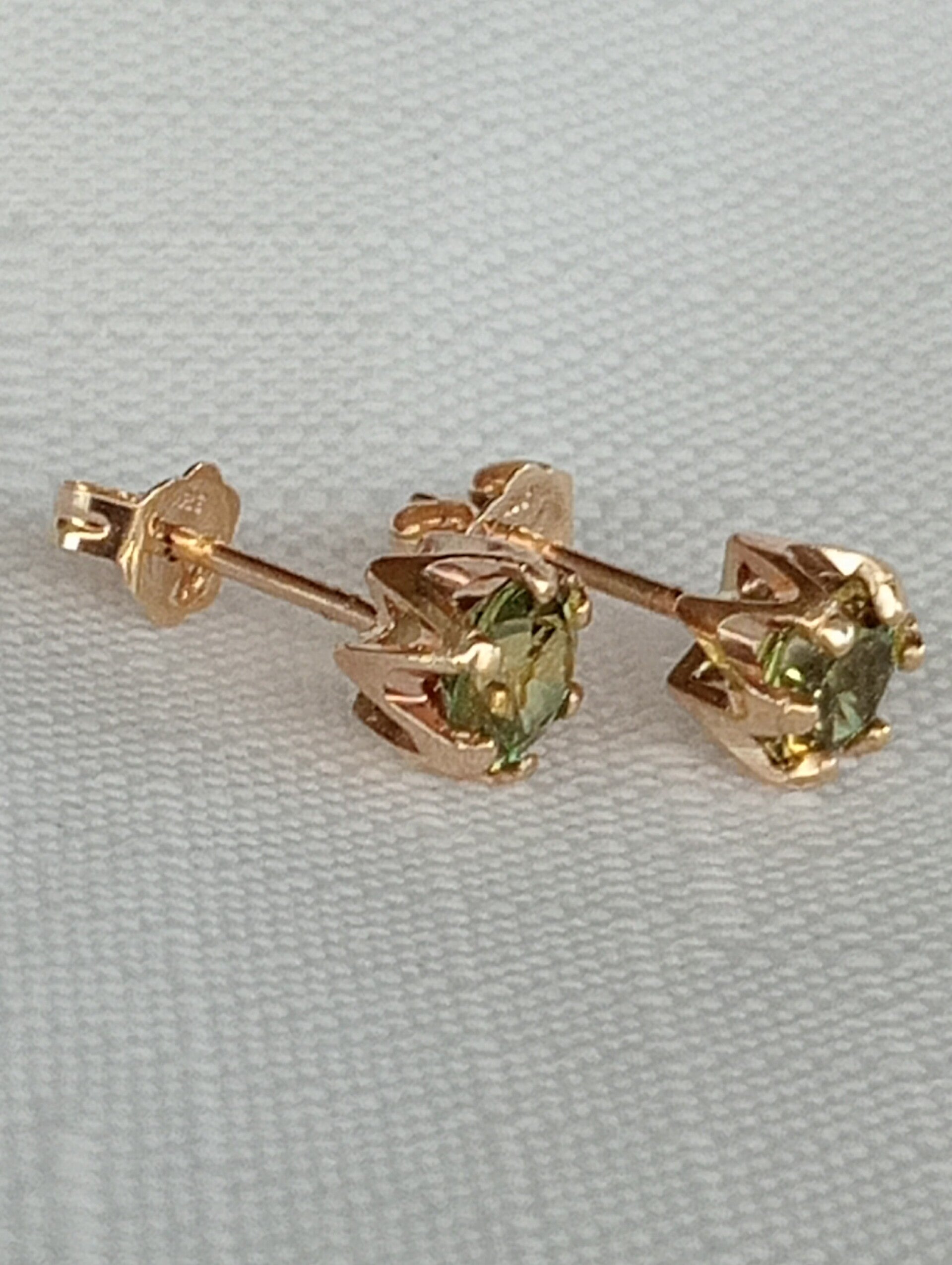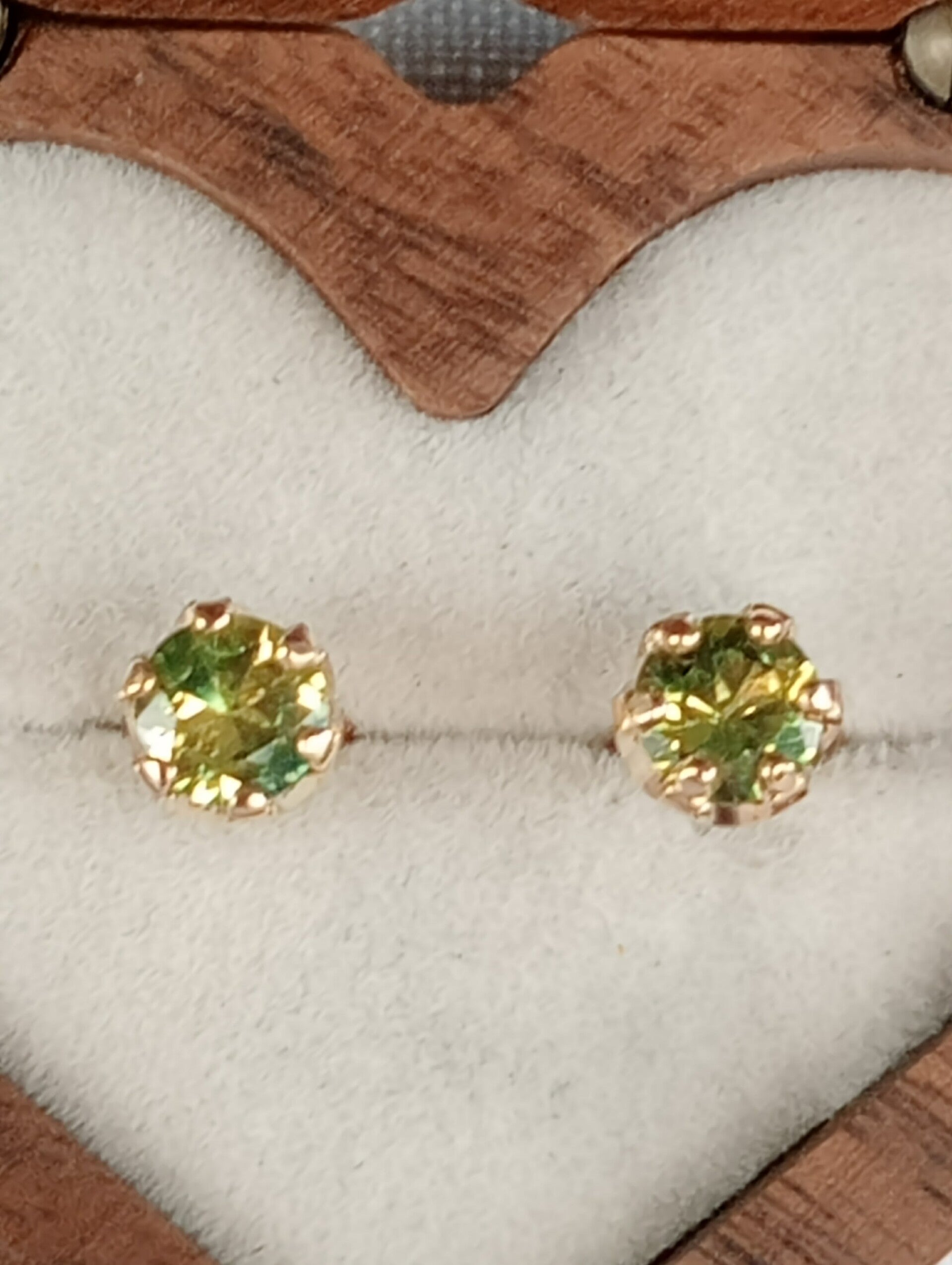 Stunning pair of 1.65ct 5.6mm Yellow/Party CQ Sapphires set in these beautiful Crown design 9ct Gold studs.