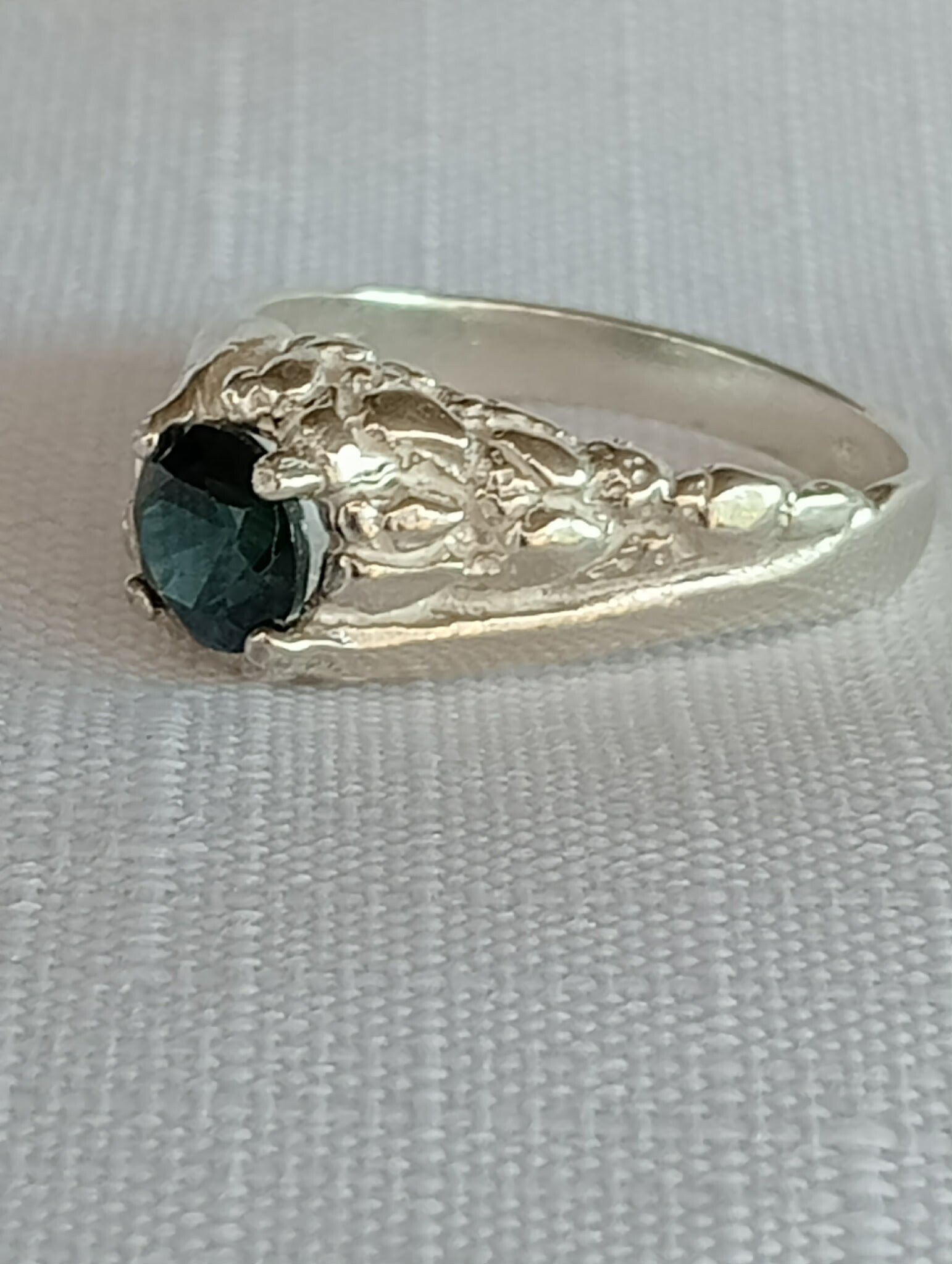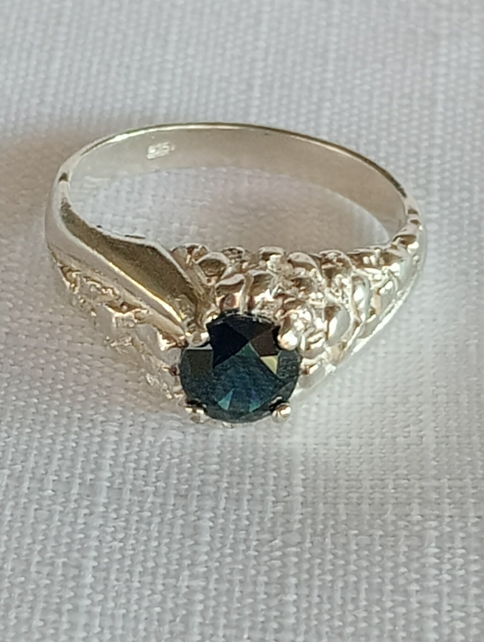 Beautiful 1.5ct CQ 6.5mm Blue Sapphire set in this Amazing Sterling Silver nugget design. Mens (or ladies if you like them chunky)
